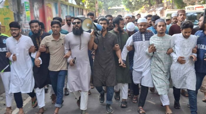ভারতীয় কট্টর হিন্দুত্ববাদী সংগঠন ইসকন বাংলাদেশে নিষিদ্ধের দাবিতে বিক্ষোভ মিছিল করেছেন ঢাকা কলেজের শিক্ষার্থীরা। শুক্রবার (২৪ অক্টোবর) জুমার নামাজ শেষে কলেজের কেন্দ্রীয় মসজিদ থেকে বের হয়ে মিছিলটি সাইন্সল্যাব মোড় প্রদক্ষিণ